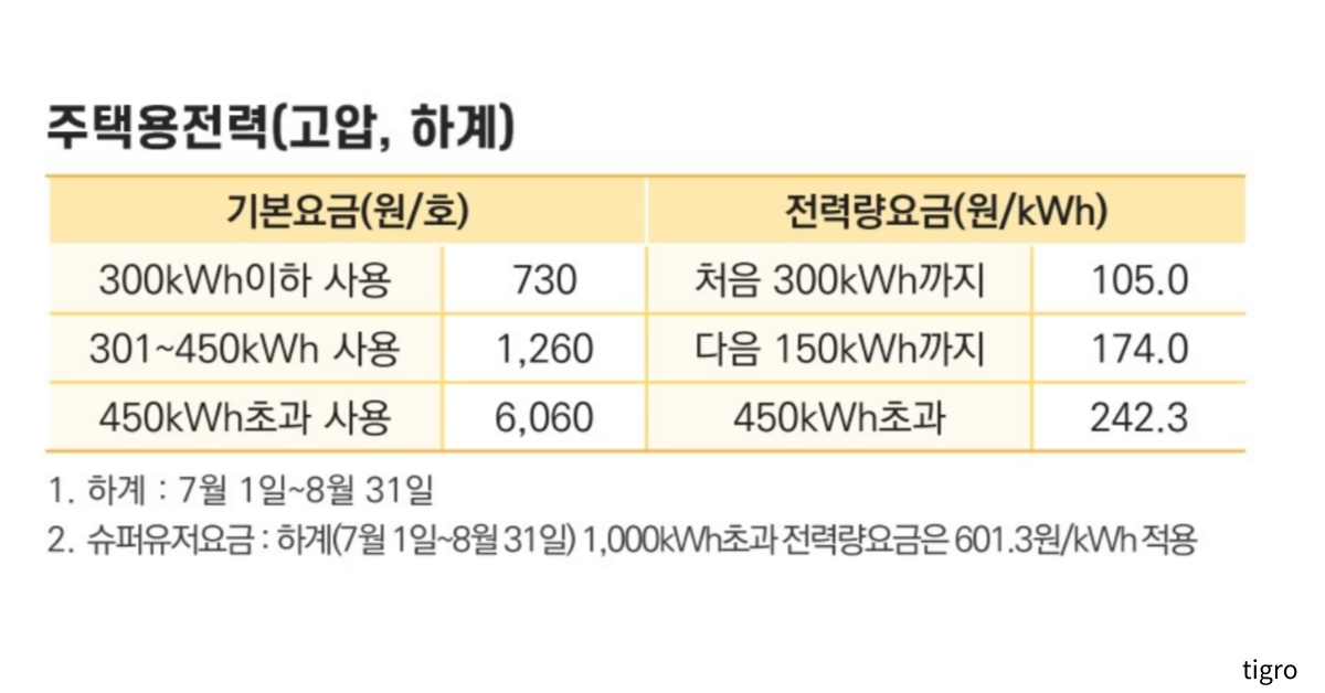여름철 저압용 주택 전기를 사용하고 계실때