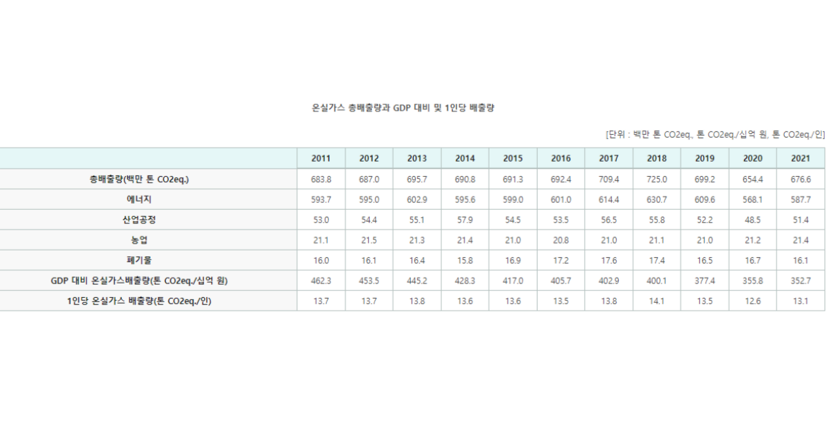 환경부에서 제공한 국가 온실가스 통계를 보시면 정확하게 파악 할 수 있습니다.